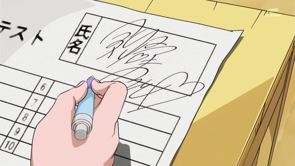 あと、ちょっと今回残念だったのが、まこピーが転校生としてマナたちのクラスにやって来て、テストの答案用紙にまこピーがサインを書いちゃうシーン。