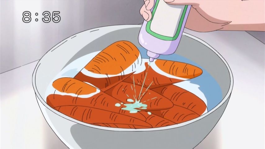 用意するのは卵×4個、人参×1本、玉ねぎ×1玉、ベーコン200g、バター・塩こしょう適量、牛乳100ccと、プリキュア4人ですwww